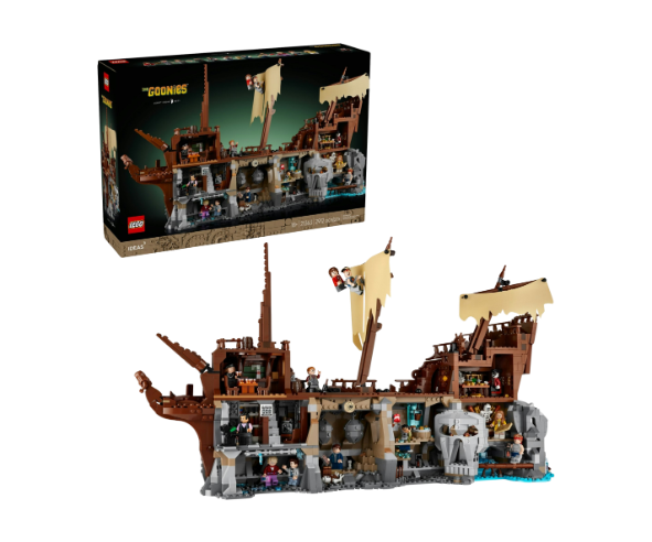 “Hey, you guys!” Relive The Goonies movie adventure with this collectible LEGO® Ideas set for adults (21363). This diorama model features brick-built vignettes of iconic scenes from the 1980s cult classic movie, from the Fratellis’ hideaway and caves to Willy’s treasure room. Turn the model around to view a detailed recreation of the exterior of the Inferno pirate ship ruins.