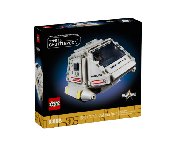 - LEGO® Icons Star Trek model – Embark on a creative voyage with this LEGO Icons Star Trek: Type-15 Shuttlepod™ model kit for adults and fans of the Star Trek: The Next Generation series